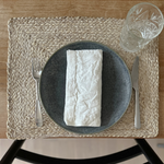 Schöne leichte Jute-Tischsets. Hergestellt aus Jutegeflecht, schön in einem rechteckigen Muster genäht.