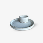 Schöner handgedrehter kleiner Teller. Der Seagull-Teller hat eine weiche, matte Oberfläche mit braunen Lavaflecken, die durch den Ton hindurchscheinen.